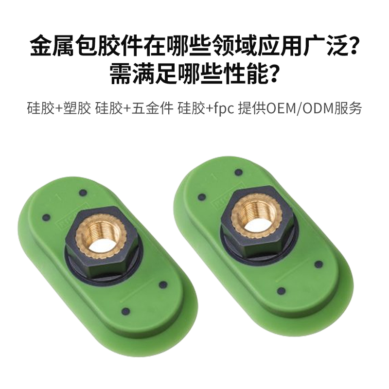 金屬包膠件(金屬與橡膠 / 硅膠通過(guò)注塑、模壓等工藝結(jié)合的復(fù)合件)因兼具金屬的強(qiáng)度剛性與高分子材料的絕緣、密封、減震等特性,在多個(gè)高要求領(lǐng)域應(yīng)用廣泛。以下從核心應(yīng)用領(lǐng)域和關(guān)鍵性能要求兩方面展開(kāi)說(shuō)明,幫助您精準(zhǔn)匹配市場(chǎng)需求: