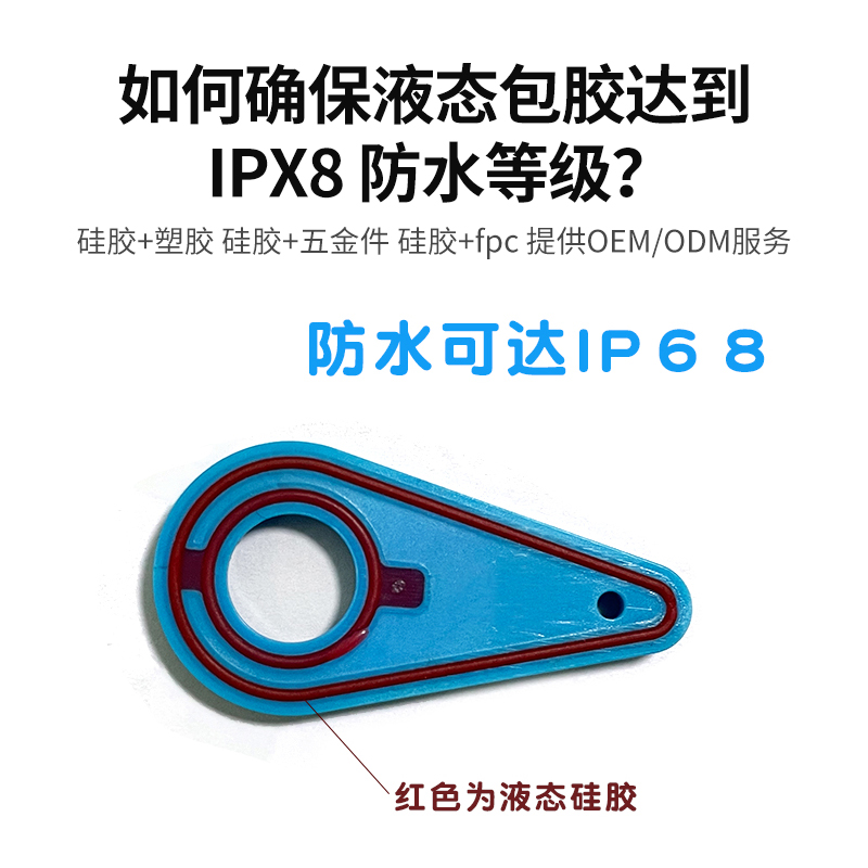 確保液態包膠(如液態硅膠 LSR 包膠)達到 IPX8 防水等級(通常指水下 1.5 米以上持續浸泡不滲水),需要從材料、工藝、結構設計到檢測全鏈條嚴格把控。以下是關鍵技術要點和解決方案,附工廠端可突出的營銷賣點: