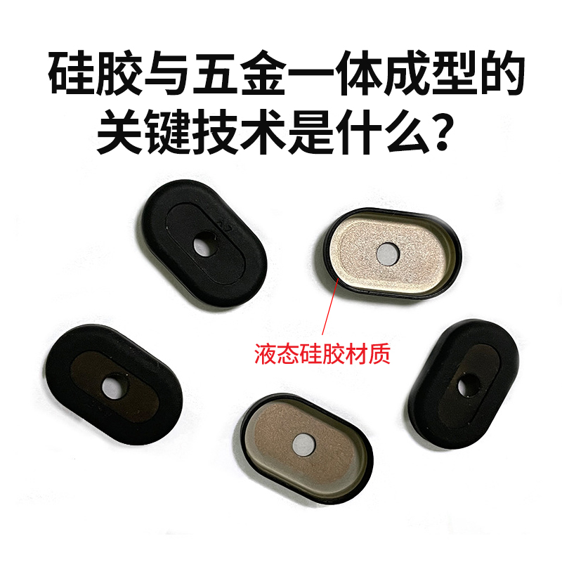 硅膠與五金一體成型的核心是實現(xiàn)硅膠與五金基材的高強(qiáng)度穩(wěn)定結(jié)合、精密尺寸控制及功能一體化,關(guān)鍵技術(shù)圍繞 “基材預(yù)處理、材料適配、模具設(shè)計、工藝調(diào)控” 四大核心環(huán)節(jié)展開,具體如下:
