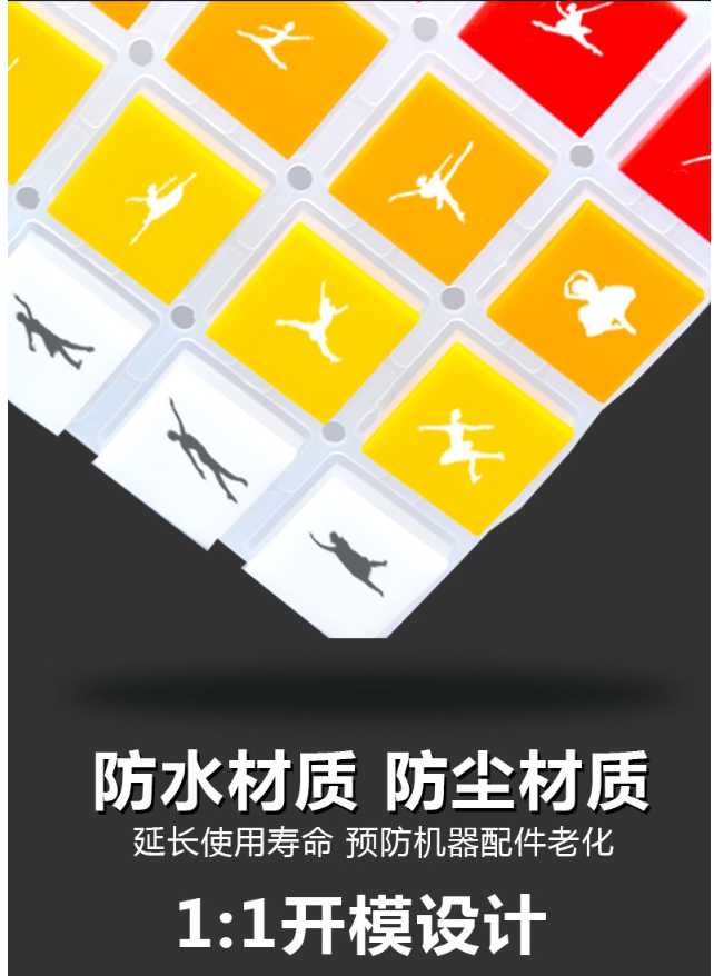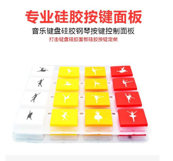 這款彩色硅膠按鍵采用環(huán)保級(jí)硅膠和導(dǎo)電硅膠組合而成,這款硅膠按鍵具有耐磨抗氧化使用壽命在10年